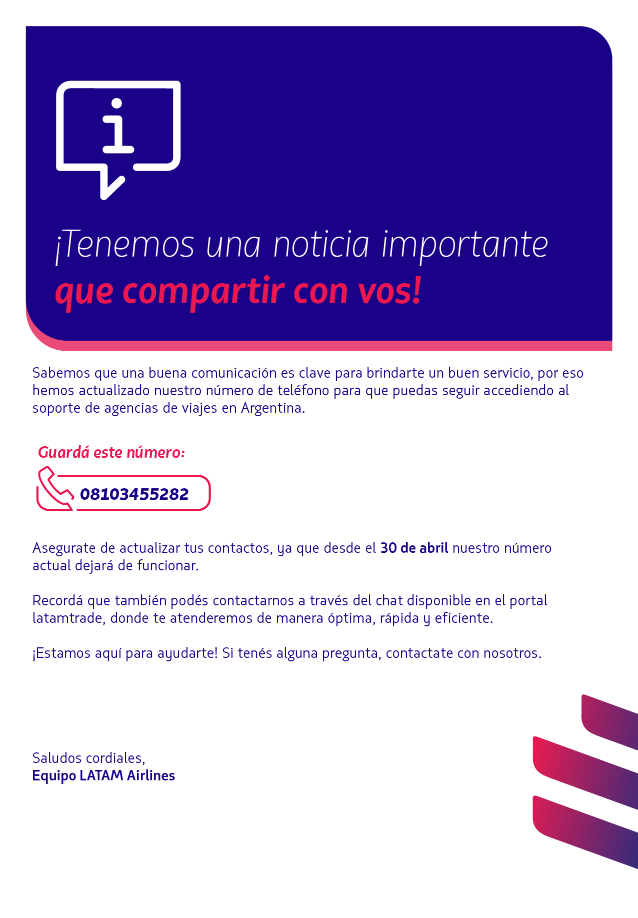 Asegúrate de actualizar tus contactos ya que nuestro teléfono actual dejará de funcionar el día 30 de abril.