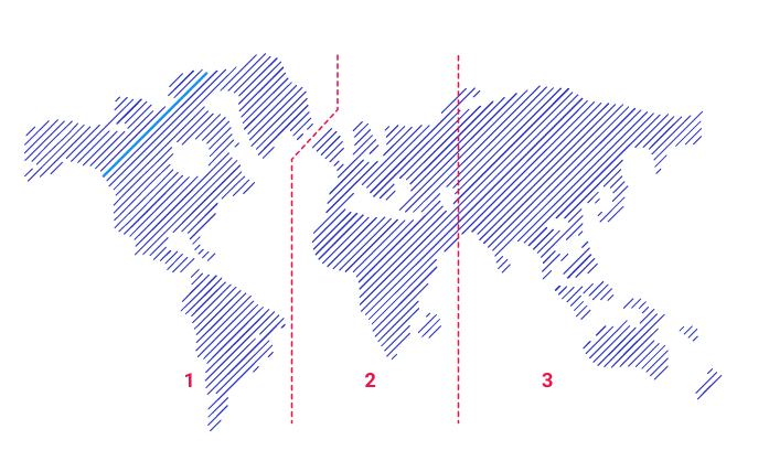 Para esclarecer qual é o trajeto geograficamente mais longo ou mais importante em uma viagem interlinear, a Associação de Transporte Aéreo Internacional (IATA) divide o globo tem três áreas:
